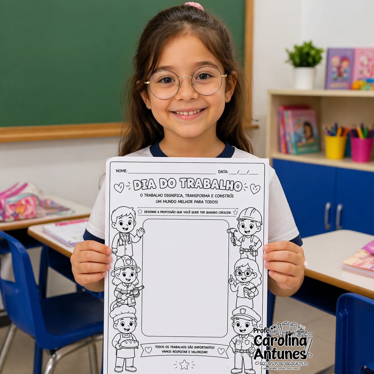 A proposta convida a criança a desenhar a profissão que deseja ter, estimulando criatividade e valorização do trabalho. ✔️ Preto e branco
