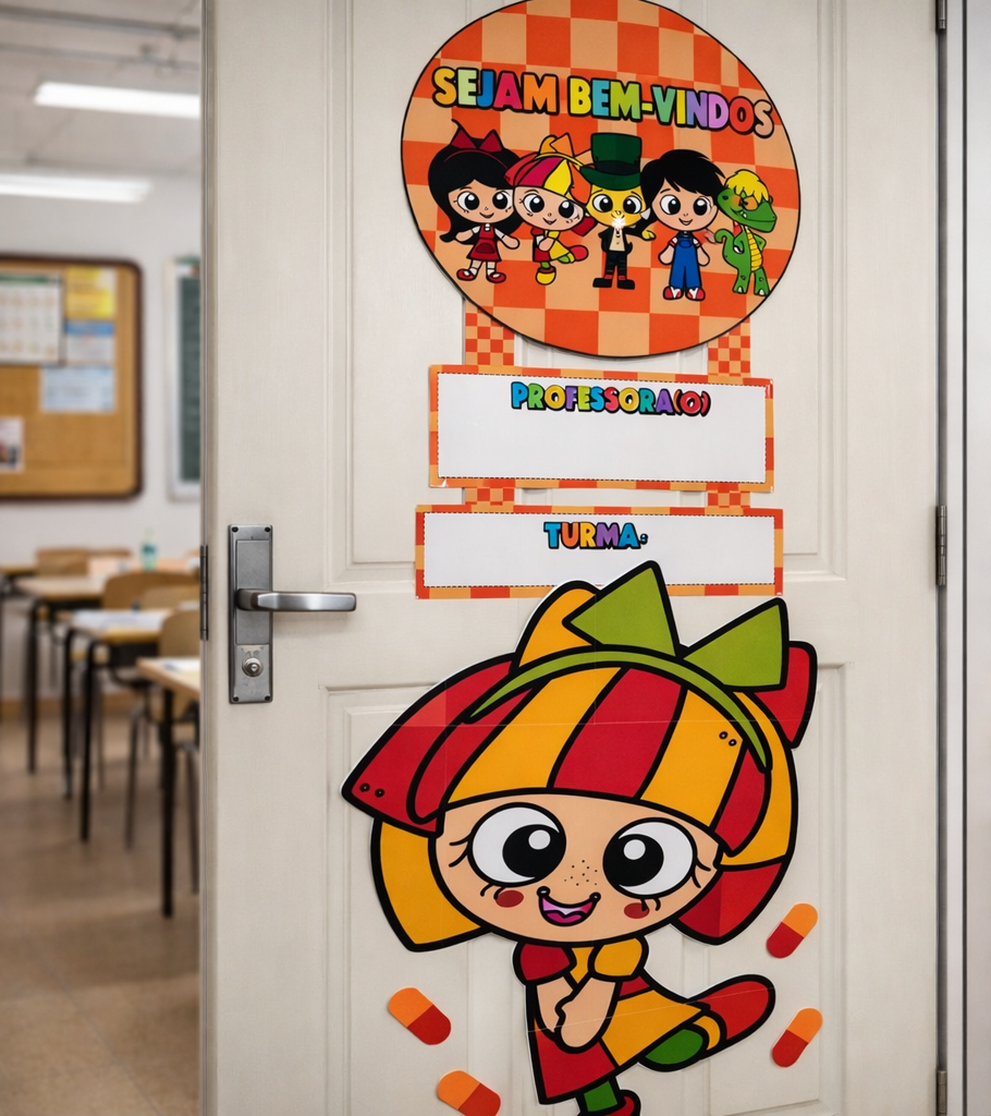 ✨ Placa “Sejam Bem-Vindos” com personagens fofos